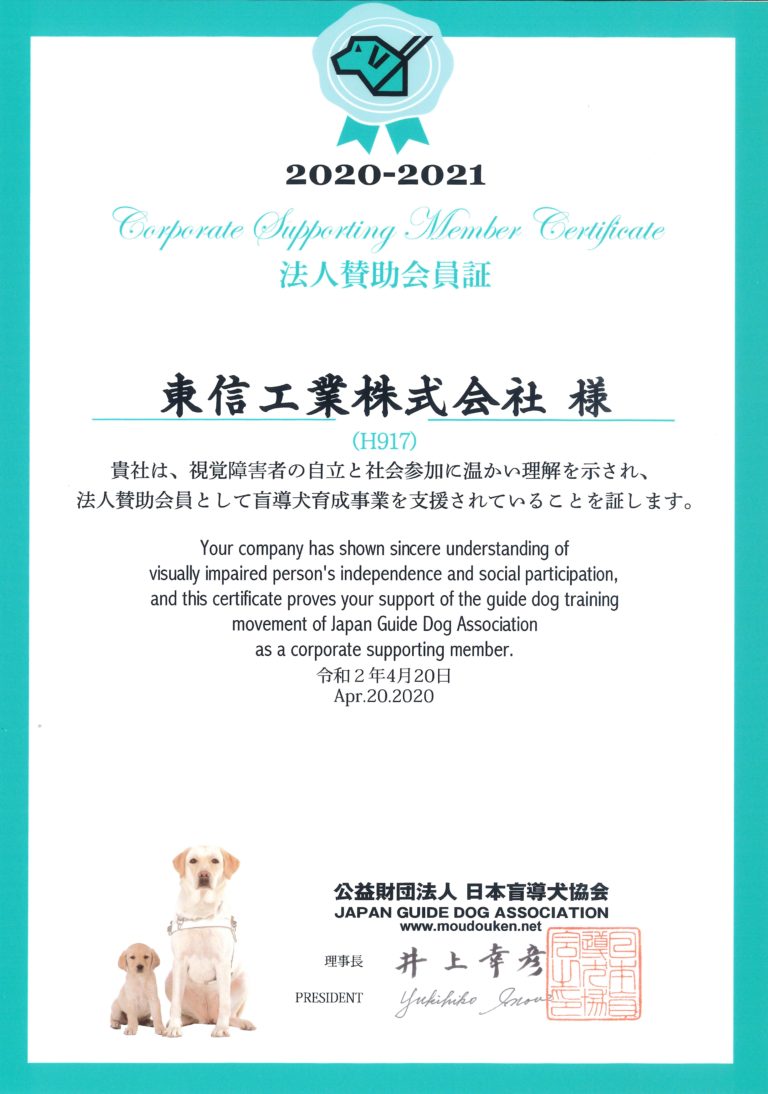 (公財)日本盲導犬協会の法人賛助会員になりました。(2020年4月20日)