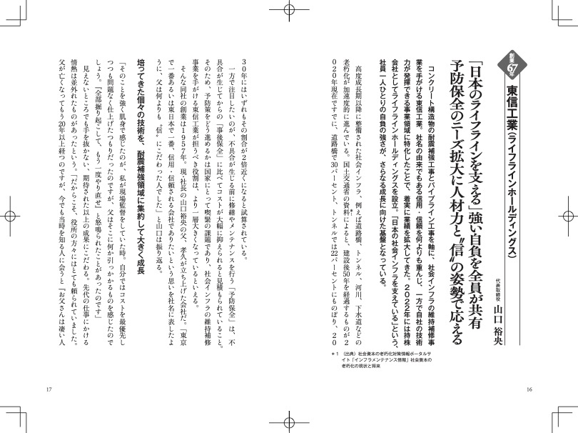 当社の記事は「日本のライフラインを支える」強い自負を全員が共有 予防保全のニーズ拡大に人材力と〝信〞の姿勢で応える」と題して16ページ目に掲載されますので、是非ご覧ください。